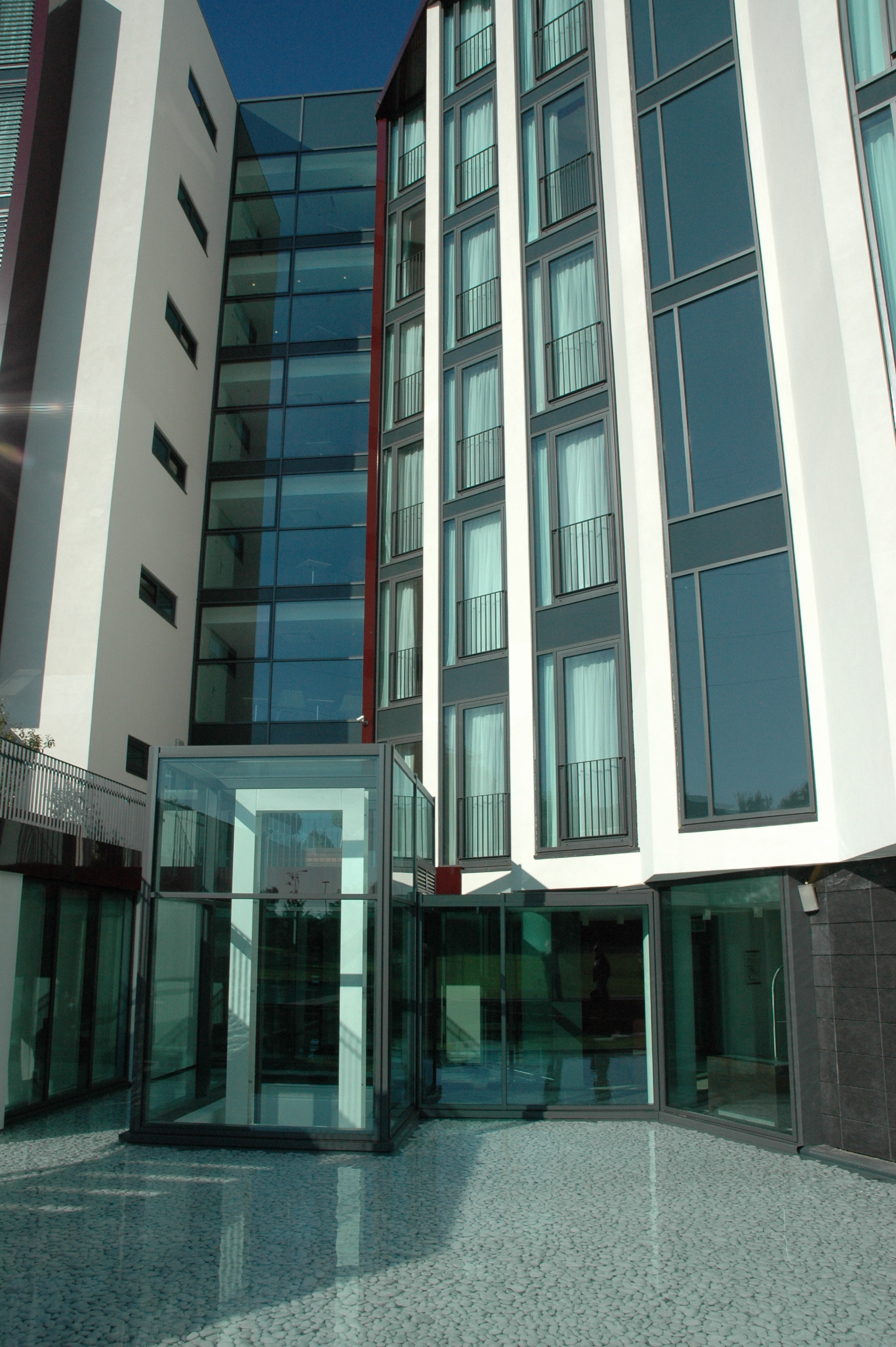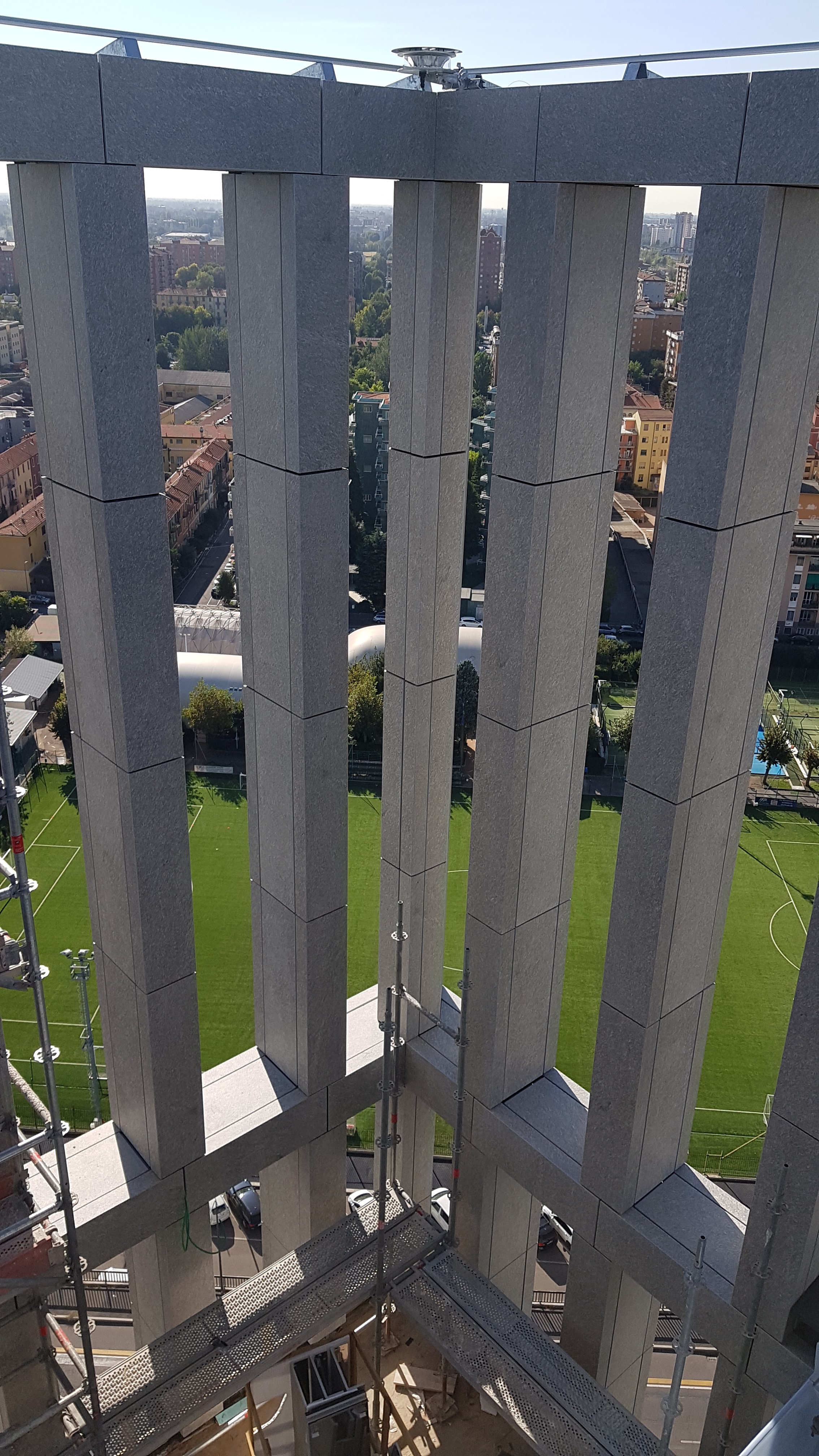 Facciata in trespa con inserimento facciata con antello strutturale a sporgere